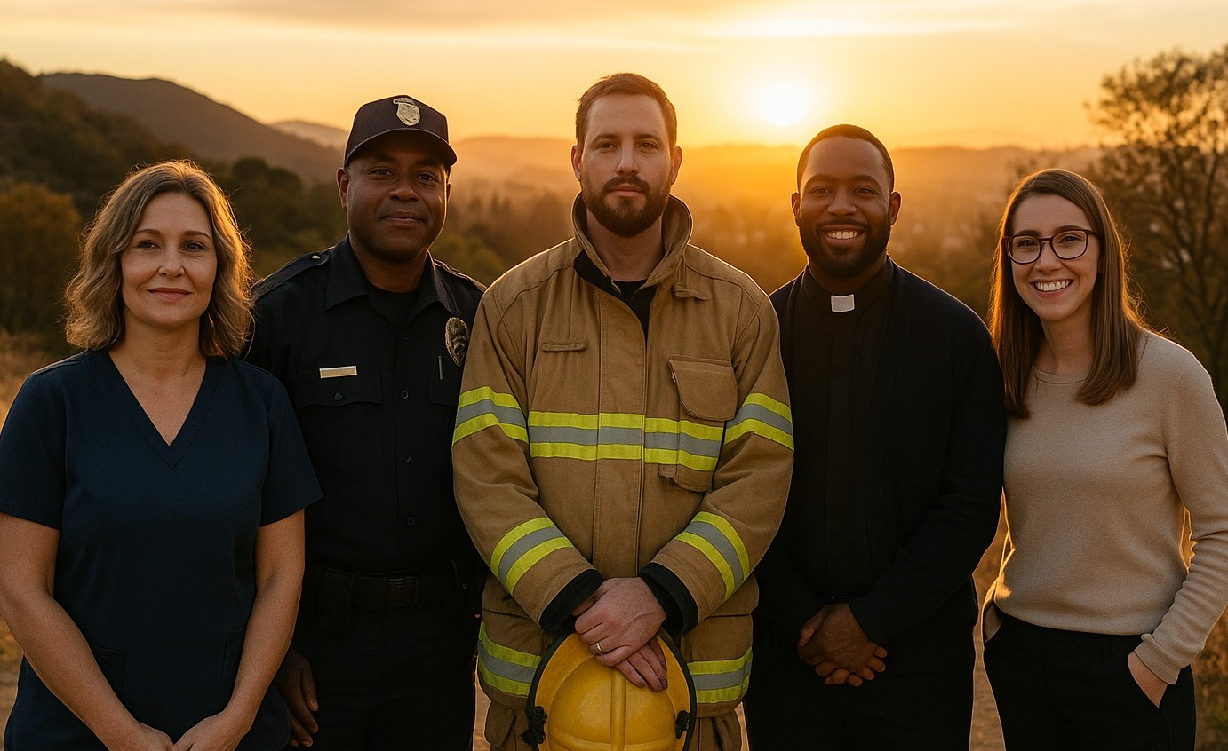 First responders, teachers, pastors, veterans, nonprofit volunteers, and community caregivers.